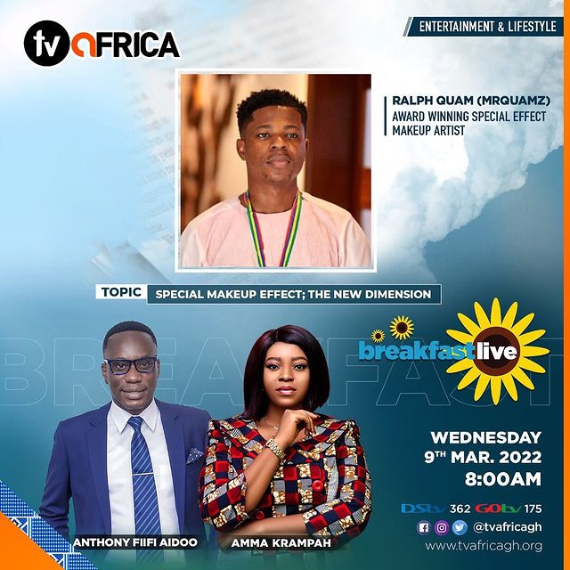 Mr. Ralph Quam is a Professional Ghanaian freelance special effect makeup artist for two (2) years since after Graduating with a Diploma in Theater Arts and Media Studies in the year 2020, he majored in Professional acting and Special Effect makeup. He is popularly called Mr. Quamz and he is the second of Six (6) Children born to Christian Family.